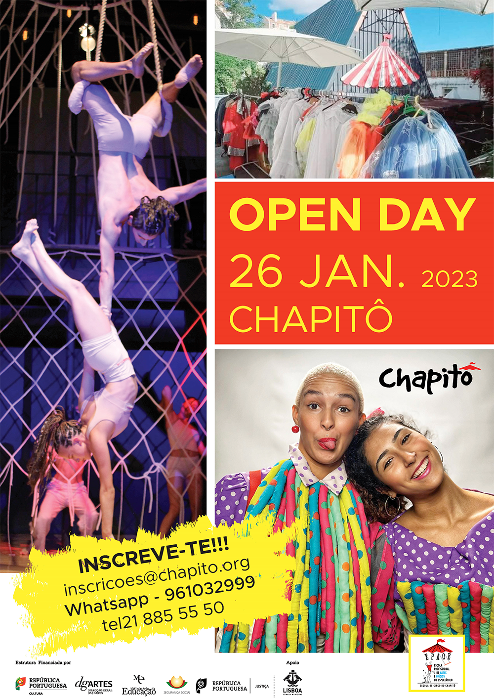 No próximo dia 26 de janeiro, a Escola de Circo do Chapitô abre as portas para um Open Day com o objetivo de apresentar a sua oferta Formativa Profissional para o Ano Letivo 2023-2024.