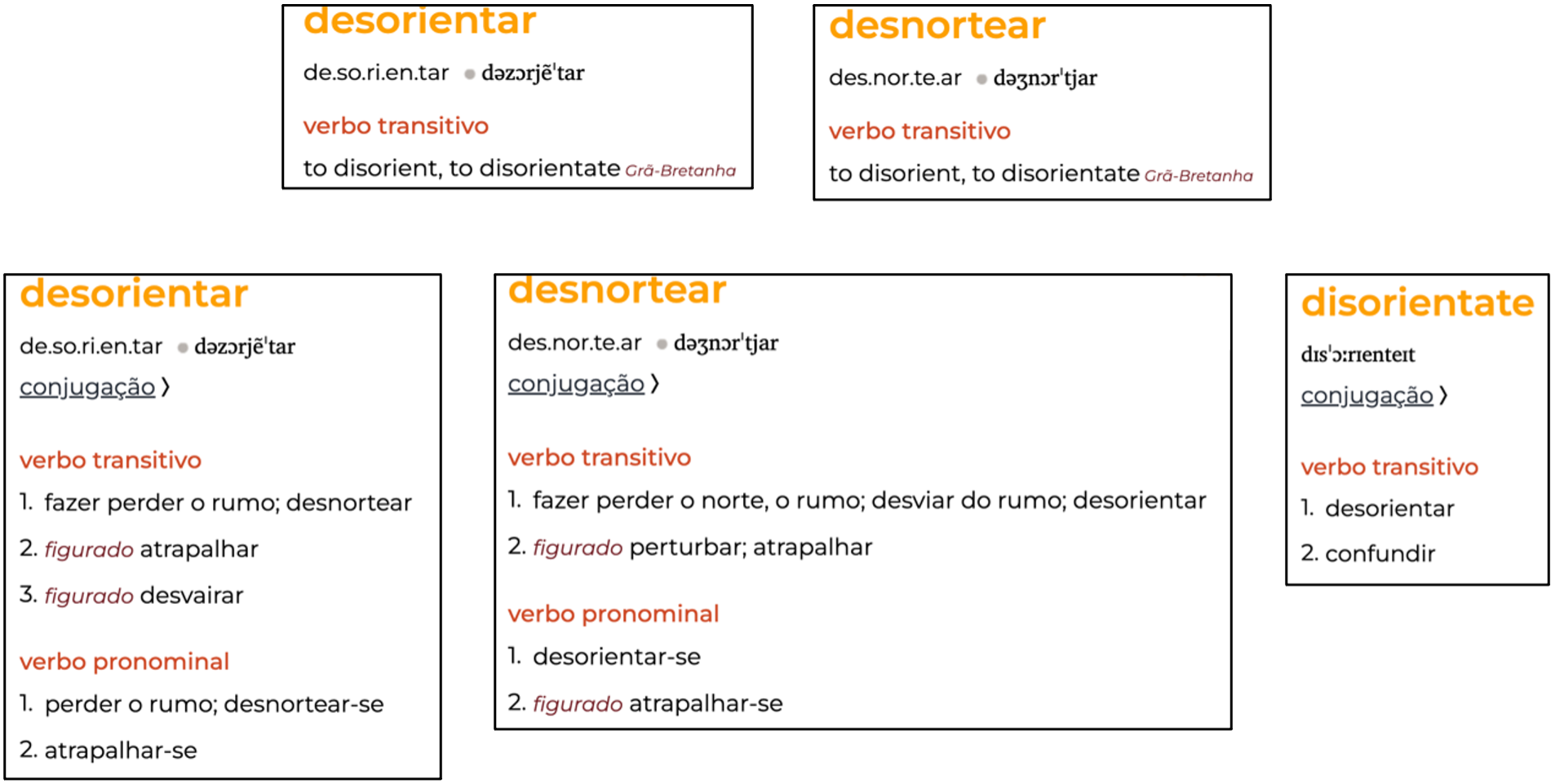 Figura 2 – desorientar e desnortear nos dicionários Infopédia
