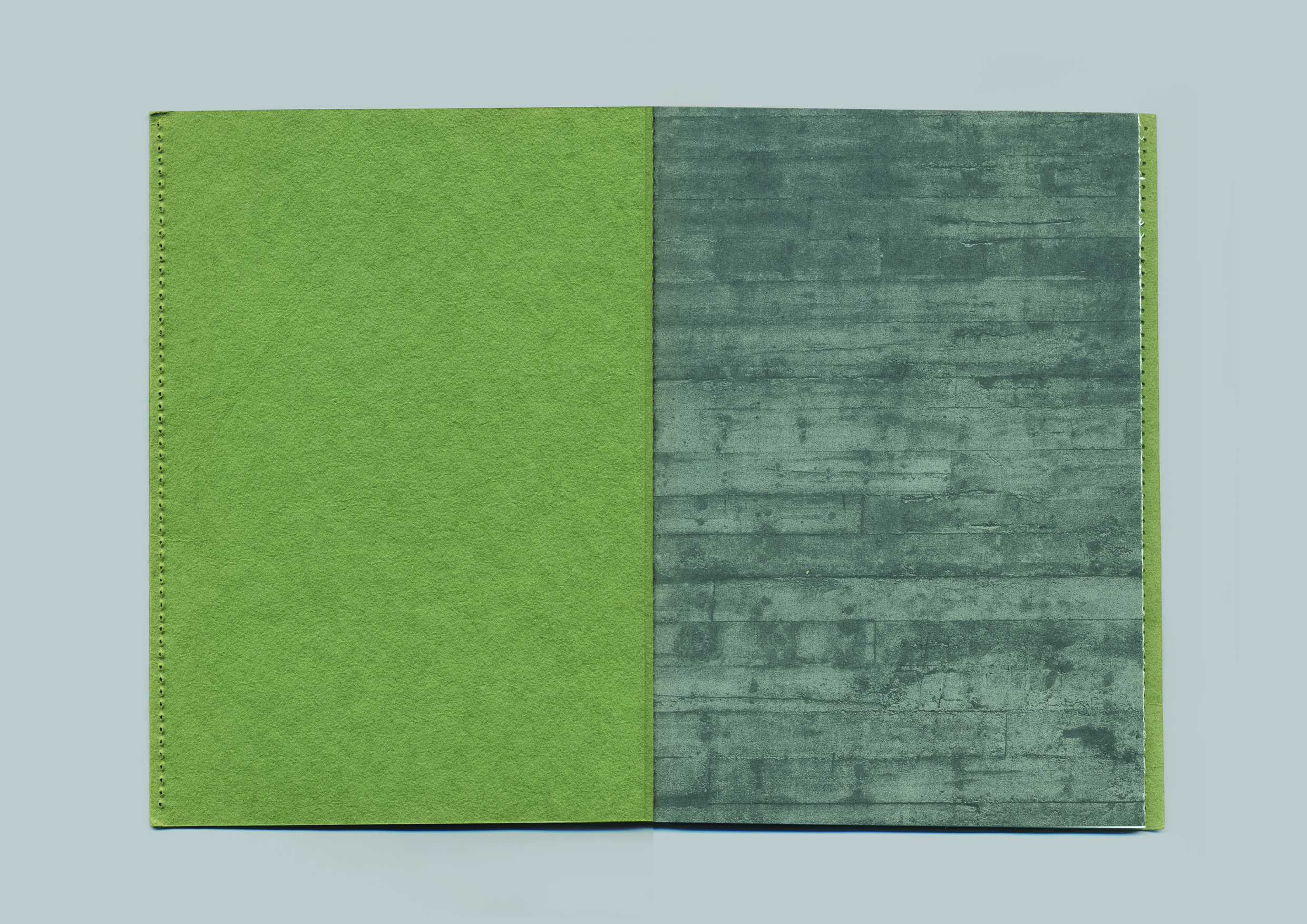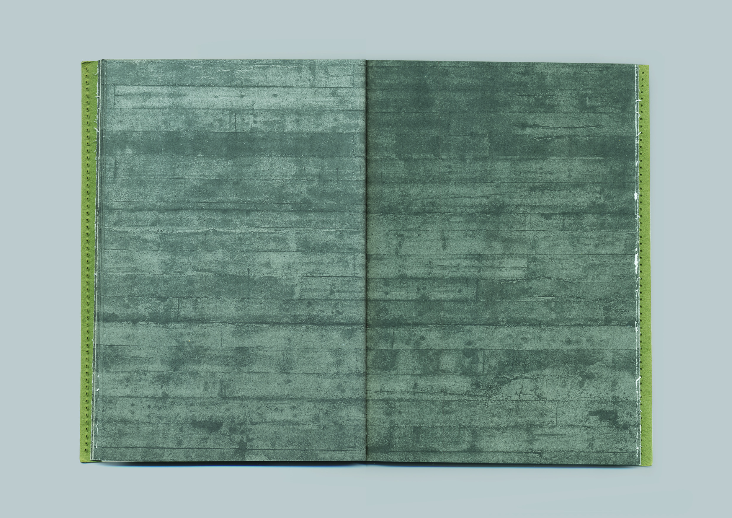 Trata-se de um livro cuja característica mais desconcertante em relação àquilo que esperamos de um livro é o facto de que ele nos chega às mãos totalmente costurado: tanto do lado da lombada como do lado do corte — ou seja, o livro aparece-nos totalmente fechado, exigindo que o descosturemos para o abrir. Quando finalmente abrimos a capa do livro, verificamos então que todas as suas páginas são uma parede — elas estão também fechadas, dobradas sobre si mesmas, como era habitual nos livros não aparados por guilhotina,[9] e impressas no lado de fora com a imagem de uma parede cinzenta. É-nos fornecido um marcador transparente, com o qual devemos então abrir cada uma das páginas, descobrindo o texto no seu interior. Trata-se, portanto, de um livro fechado, de costas voltadas para o leitor, que, de certa forma, parece dizer-nos que preferia não ser lido.