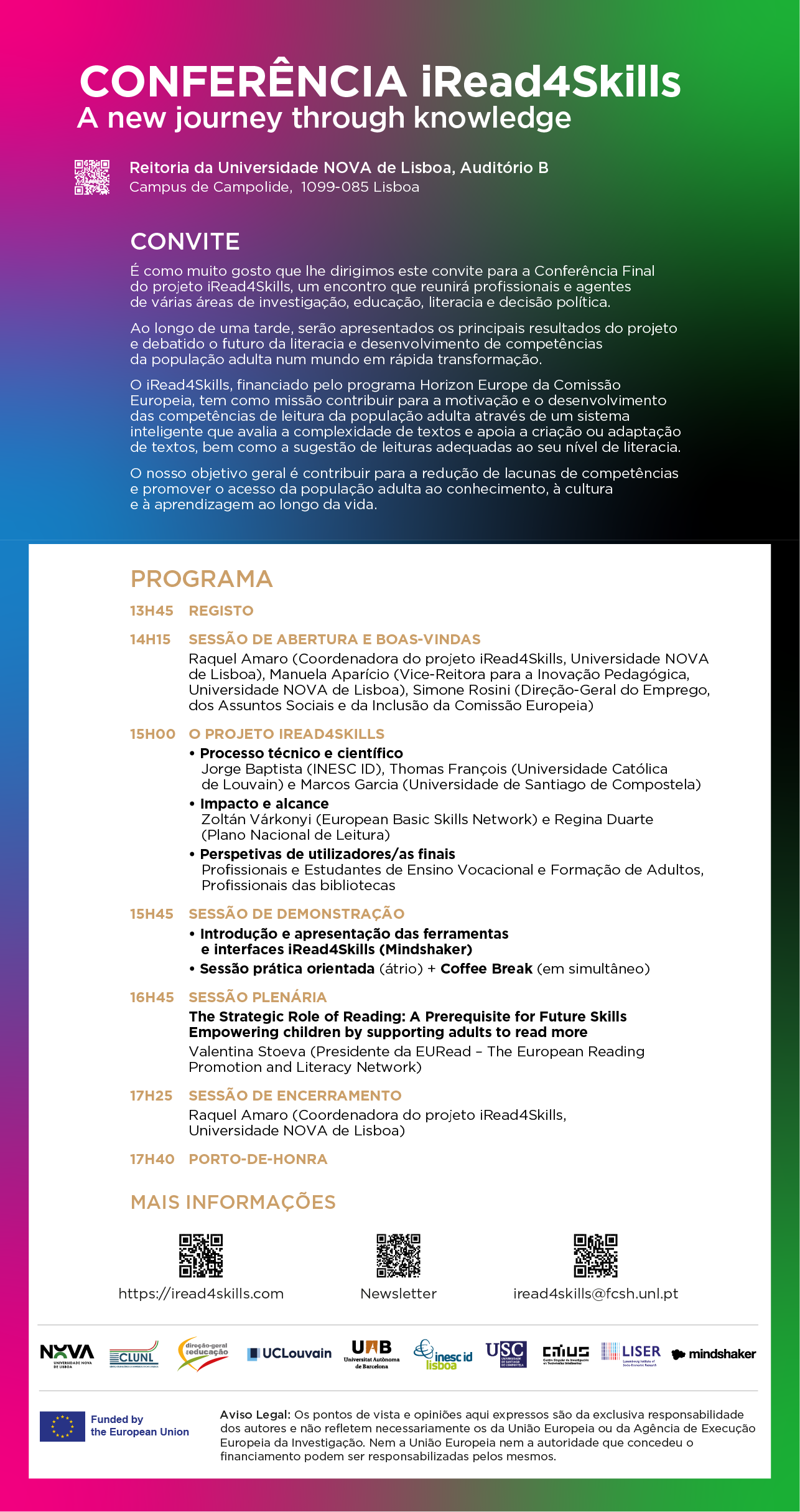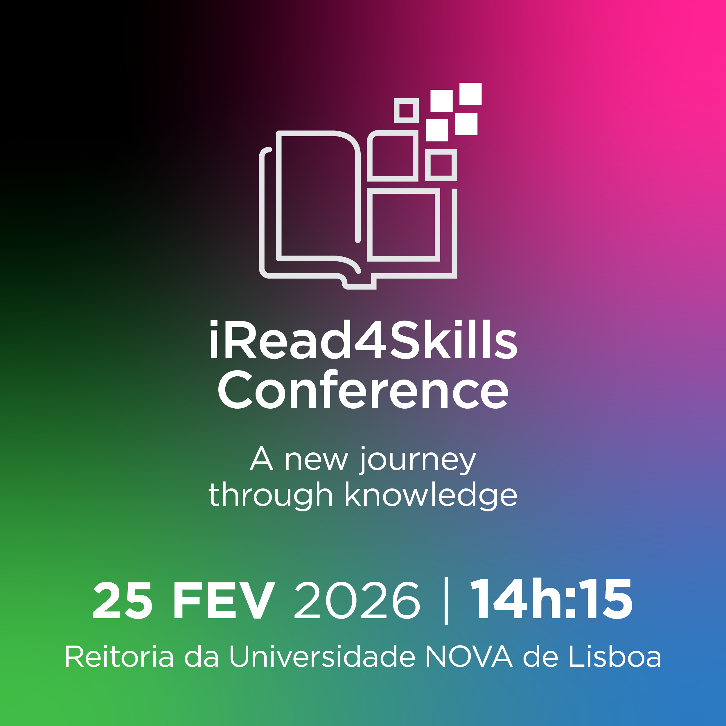 A 25 de fevereiro de 2026, decorreu, na Reitoria da Universidade NOVA de Lisboa, a Conferência Final do iRead4Skills, organizada pela FCSH – Universidade Nova de Lisboa e Plano Nacional de Leitura, com mais de 400 participantes (presenciais e online).