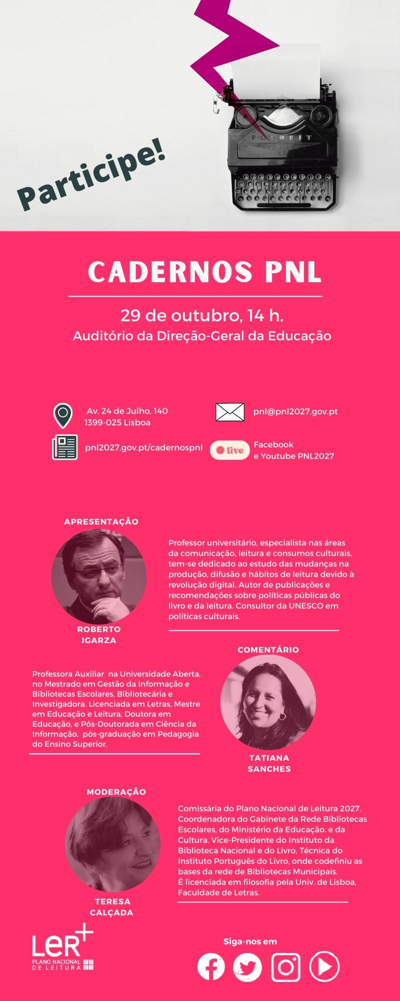 O evento decorreu no Auditório da Direção-Geral da Educação com transmissão streaming no Facebook e Youtube do PNL2027.