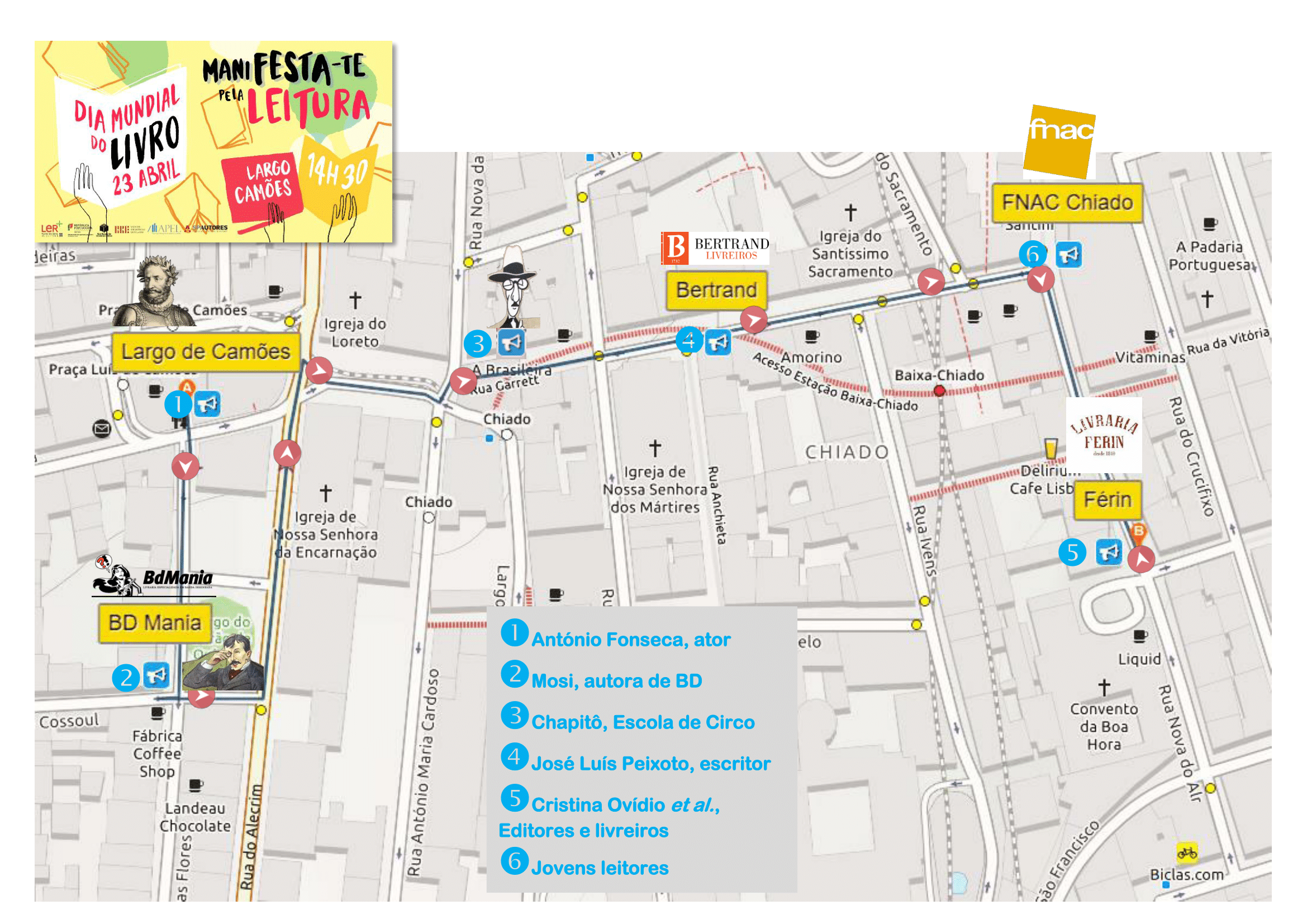 O desfile realiza-se em Lisboa, no dia 23 de abril, às 14h30, partirá da Praça Luís de Camões e seguirá pelo Chiado, com paragens para leituras em voz alta nas livrarias BD Mania, Bertrand, Férin e FNAC. O desfile será acompanhado por músicos e por artistas do Chapitô.
